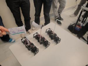 Actividad organizada dentro de la asignatura de Robótica en Ingeniería Informática de la Universidad Carlos III de Madrid. Para completar la parte teórica, y hacerla más amena, se propone a los estudiantes construir diferentes configuraciones de robots modulares con topología de 1D y realizar experimentos de locomoción y coordinación con ellos.