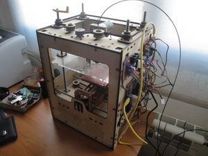 • 07/Agosto/2010: R1 llevaba parada bastante tiempo por problemas con el extrusor MK3. Hicimos una actualización al MK4, compramos dos plataformas de metacrilato y plástico de colores (Blog)