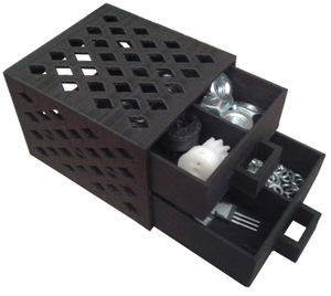 Durante mucho tiempo he estado usando los mini-cajones diseñados por ttsalo: http://www.thingiverse.com/thing:15802. Basado en ellos, he hecho un diseño diferente, en el que el cuerpo tienen un mosaico de rombos.