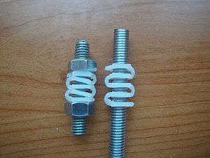 | spring.stl | Ejemplo de muelle 1: Es el que uso en la Prusa, con sección hexagonal y taladro de 8mm |
