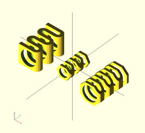 | spring3.stl | Ejemplo de muelle 3: Sección octogonal y taladro interno de 14mm |