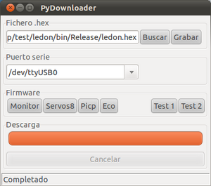 Pydownloader interface after downloading the ledon.hex program (click para ampliar)