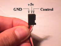 El servo dispone de un conector al que llegan tres cables. El rojo es el de alimentación (4.5-6 voltios). El negro es masa. Y el blanco es el de la señal de control